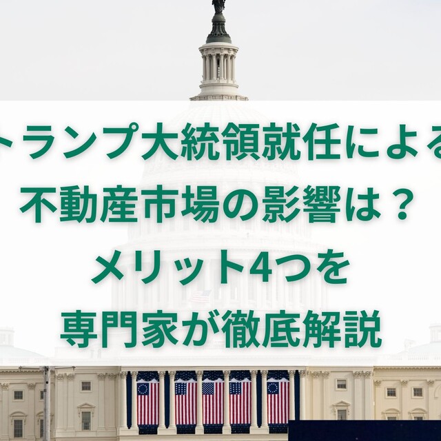 トランプ新大統領の就任によって不動産市場への影響はどのようなものがあるのか。不動産の専門家が4つのメリットを詳しく解説します。この記事を読むことで、今...